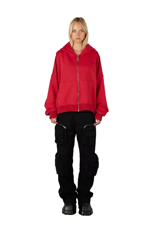 Red Logo Zip Hoodie